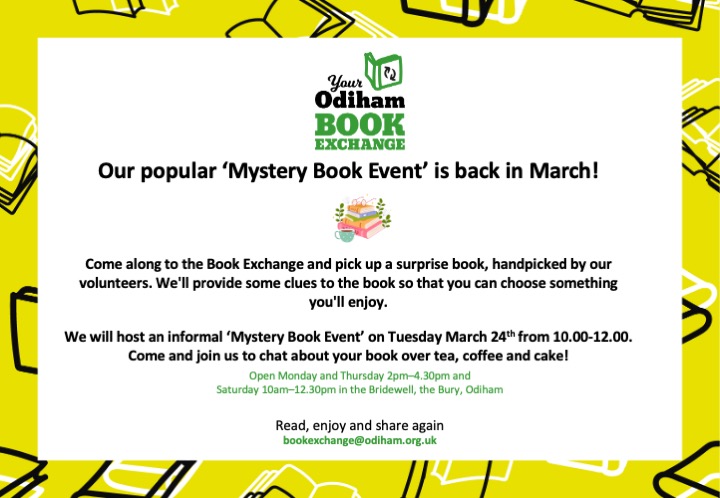 For further up to fate information follow the Odiham Book Exchange on social media at https:/www.facebook.com/odihambookexchange